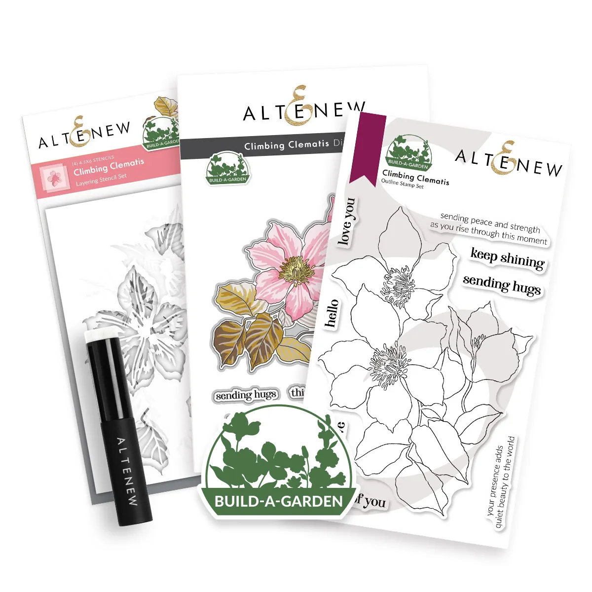 The Build-A-Garden: Climbing Clematis includes a large floral stamp, layering stencils, and coordinating dies—designed to help you create graceful, dimensional blooms with ease. From soft pastels to bold designs, you’ll love how effortlessly everything comes together.