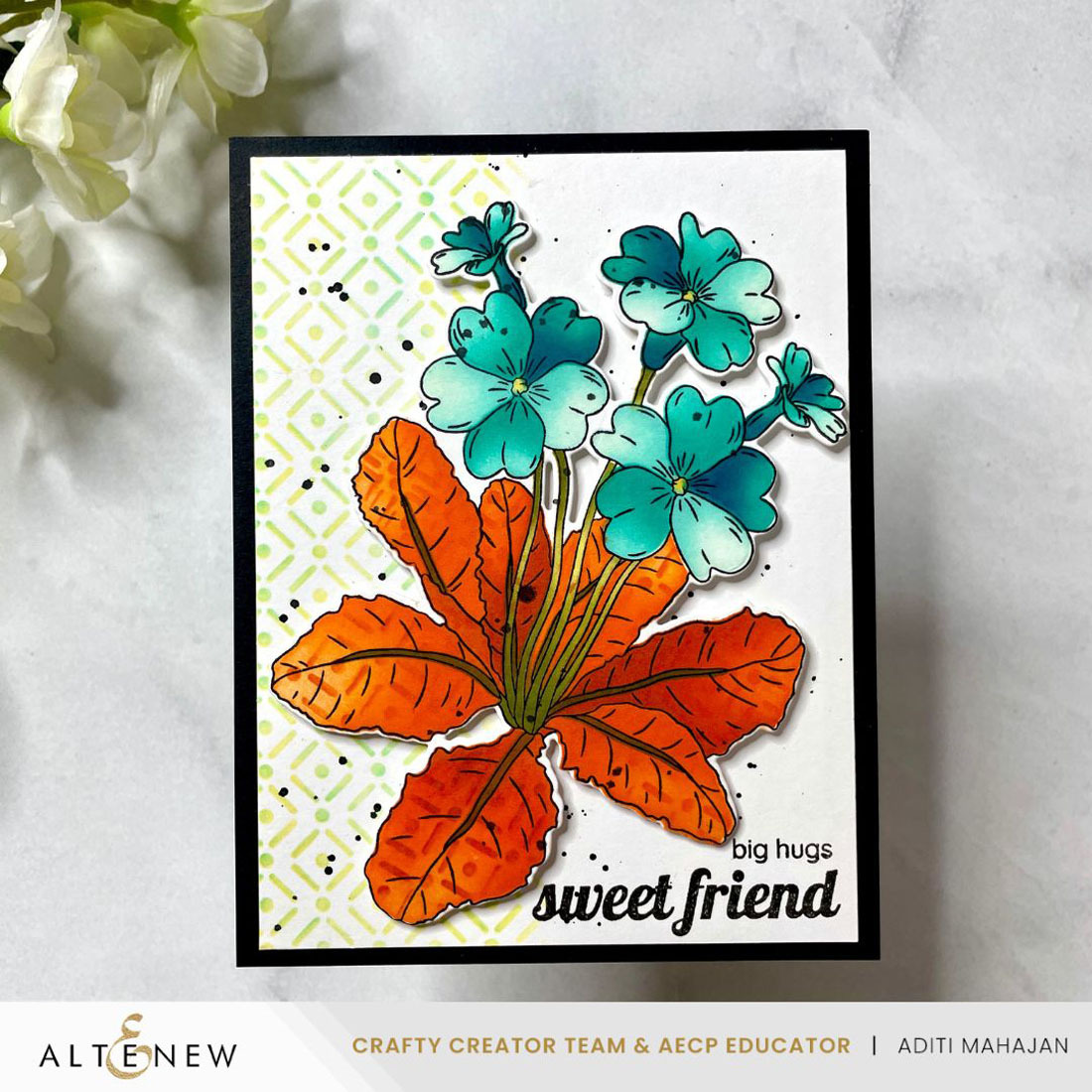 The Build-A-Garden: Primrose Stencil Set (4 in 1) perfectly coordinates with the Build-A-Garden: Primrose Stamp Set making it easy to add vibrant color to your stamped image. This versatile set includes four stencils, with stencil 4 featuring a unique background pattern for added creativity.