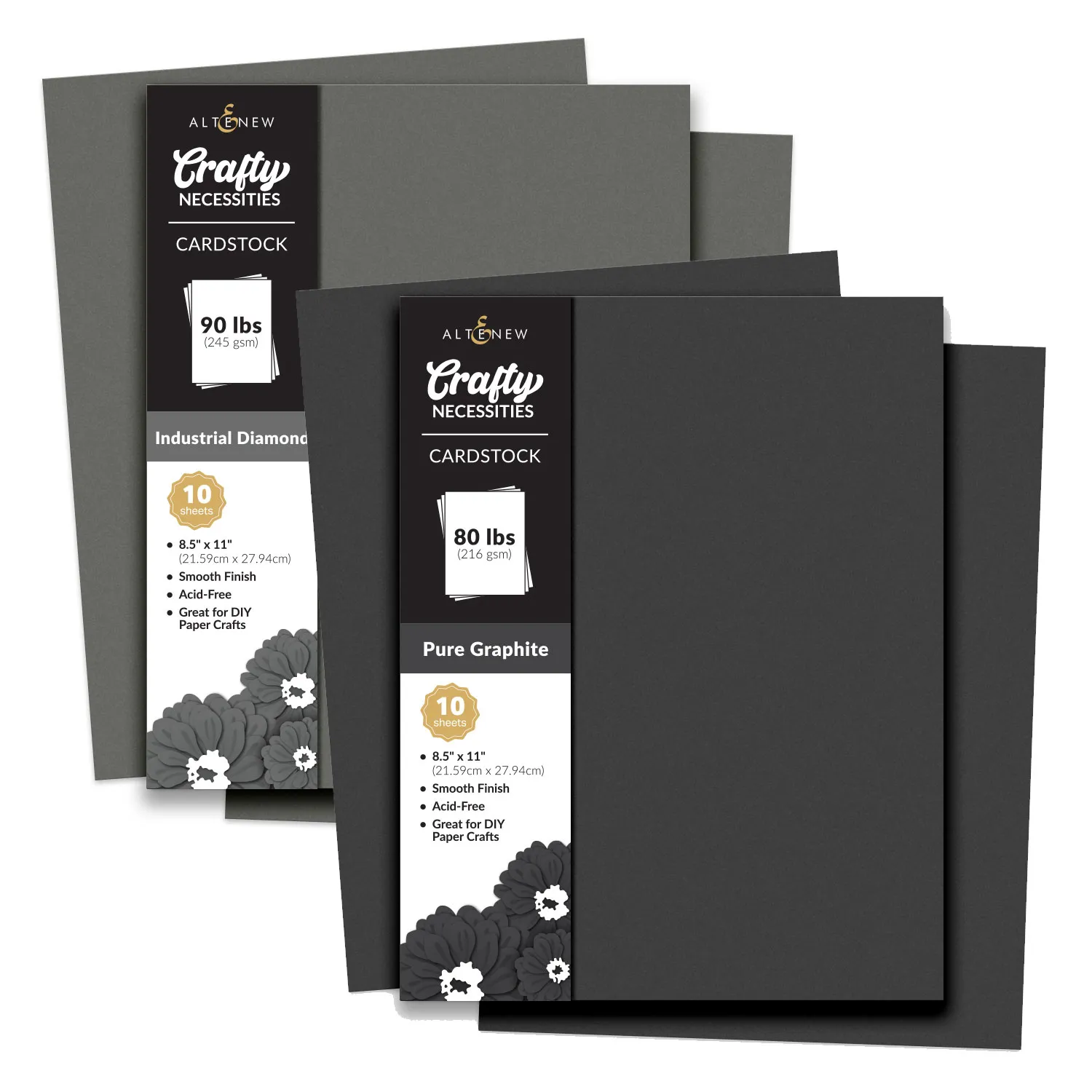 The Crafty Necessities: Rock Collection Cardstock Bundle includes Industrial Diamond and Pure Graphite Cardstock Sets.