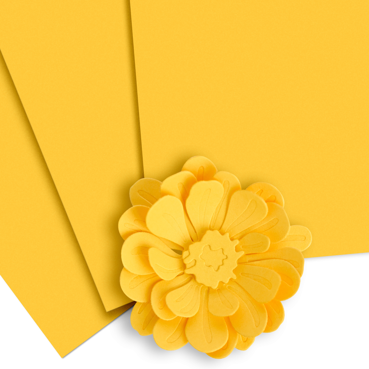 Crafty Necessities: Maple Yellow Cardstock is your go-to crafting companion to achieve beautiful and vibrant projects. With its premium quality and a weight of 240 gsm/88 lbs, this cardstock ensures a high-quality finish that will bring your creative vision to life. Each pack includes 10 letter sized sheets, providing ample crafting material for die cutting, flower making, etc. Maple Yellow is part of our Pocketful of Sunshine color family. This color is a vibrant shade of golden yellow. This hue conveys warmth, positivity, and energy, making it perfect for adding a cheerful and eye-catching element to designs.