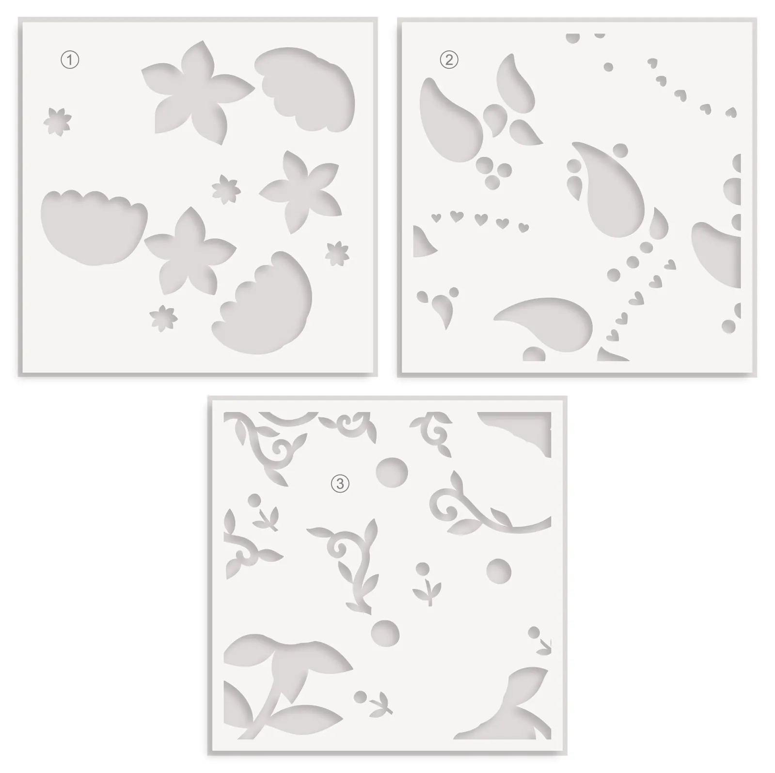 Enhance the Hearts & Paisleys 3D Embossing Folder with the Hearts & Paisleys Stencil Set (3 in 1). These stencils bring vibrant color to petals, leaves, paisleys, and hearts. Create enchanting, whimsical designs using the stencil set alone.