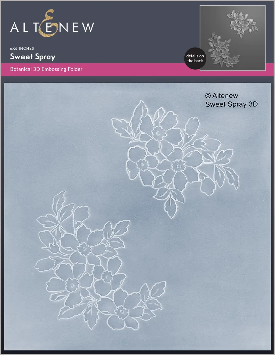 In StockCreate stunning focal points with the Sweet Spray 3D Embossing Folder, adorned with two floral clusters. This will frame your sentiments beautifully! Pair with coordinating coloring stencils to breathe life into these textured florals.