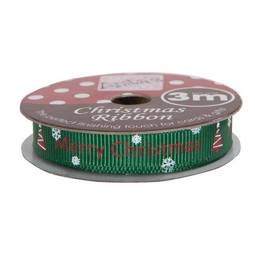 Anita's Christmas Ribbon 3mt Green Merry Christmas