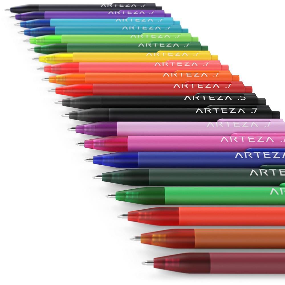Make working with retractable gel ink pens fun with this premium set of 20 in assorted colors. This colorful set of medium point (0.7mm) and fine point (0.5mm) pens comes complete with the following colors: black, purple, aqua, teal, bright green, dark green, yellow, peach, orange, red, light purple, pink, cobalt blue, forest green, neon green, neon orange, brown, and maroon. With such a wide range of colored retractable gel ink pens to work with, you are sure to create something special. Whether you plan to color, write, illustrate, draw, design, or doodle, our retractable gel ink pens (in assorted colors) will make any creative activity hassle-free.