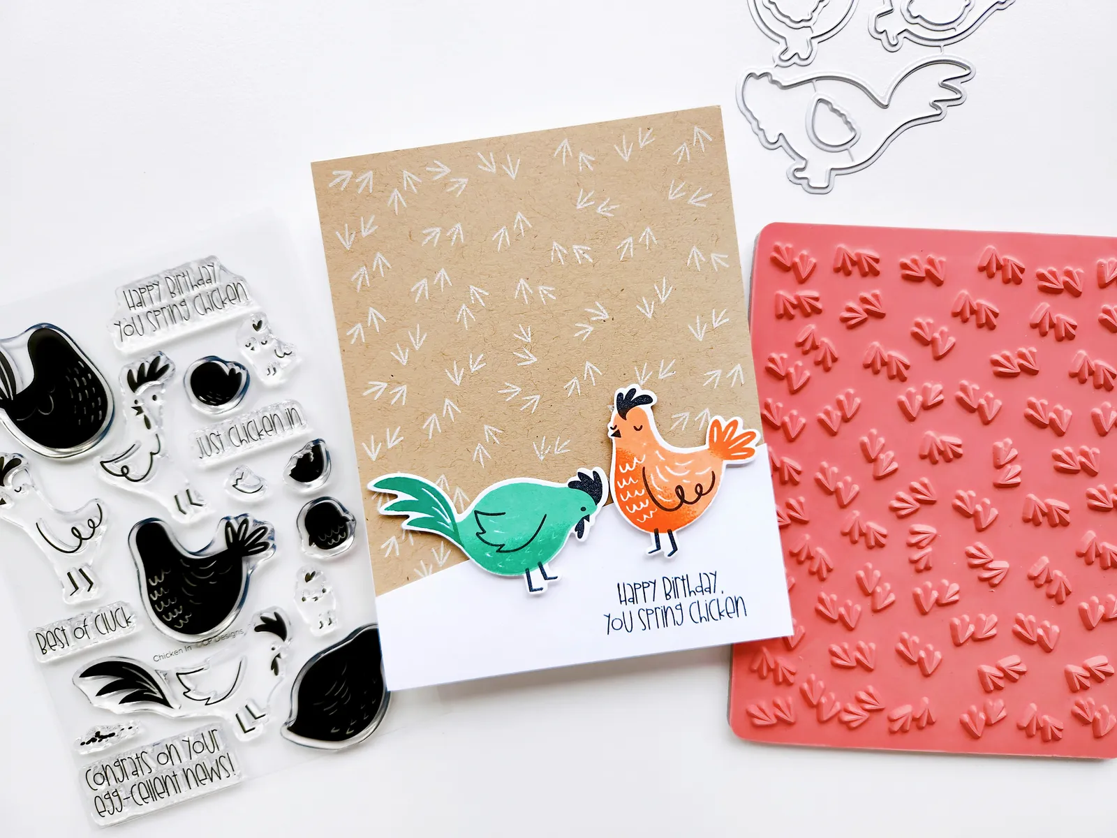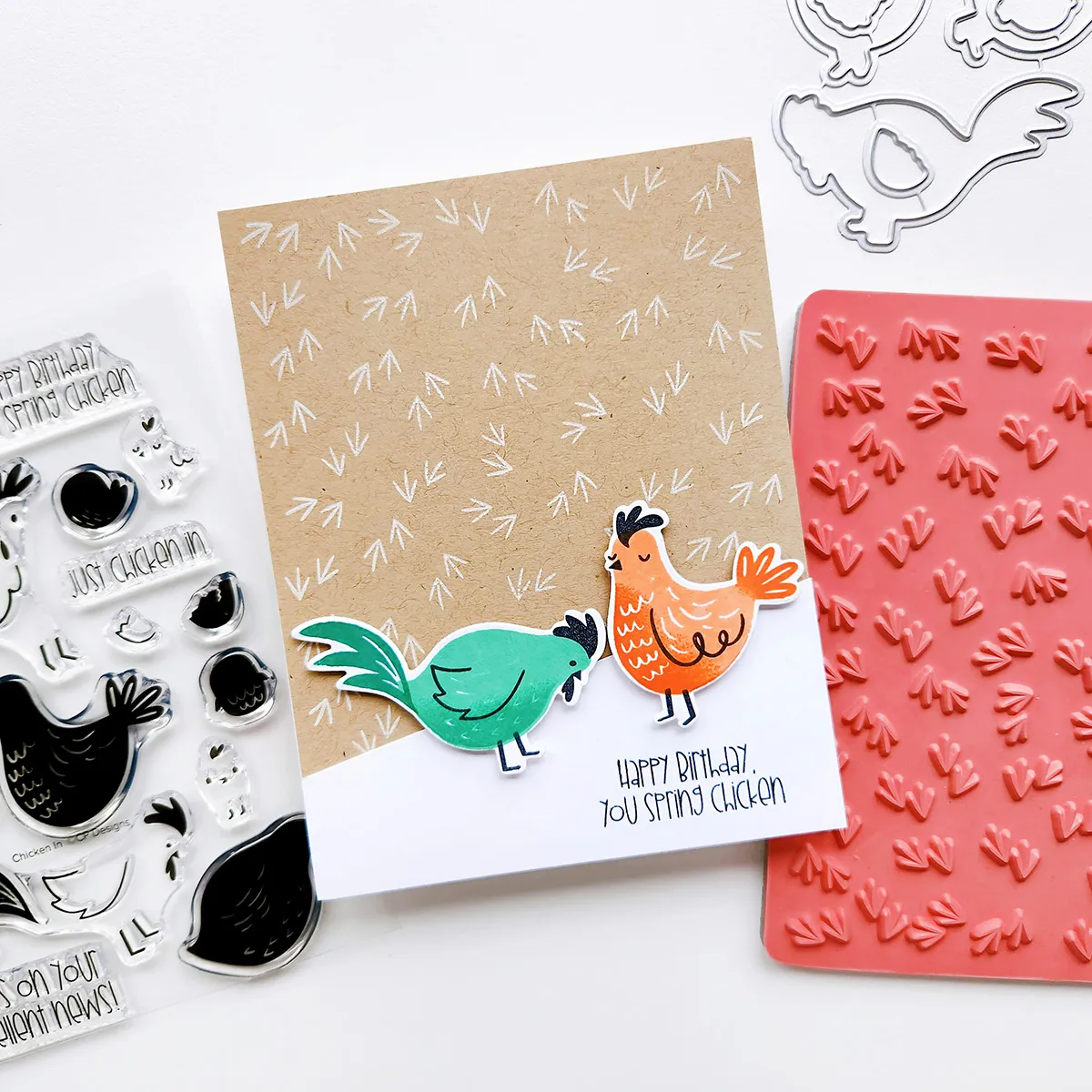 Inspired by chicken footprints out in the barnyard, the Chicken Scratch Background Stamp is a super cute way to add texture and interest to your cards and projects! Simply ink and stamp, or try it with embossing powder for extra dimension.