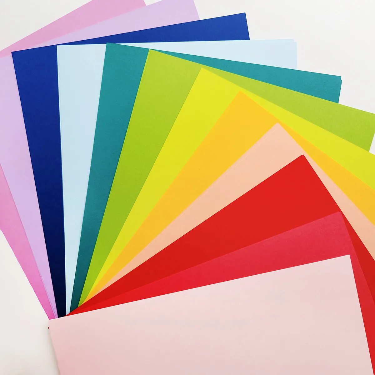 In StockSmooth, sturdy, and ready to party! This 100lb cover weight cardstock has a smooth finish and a solid core, with 24 sheets total and 2 of each saturated color.