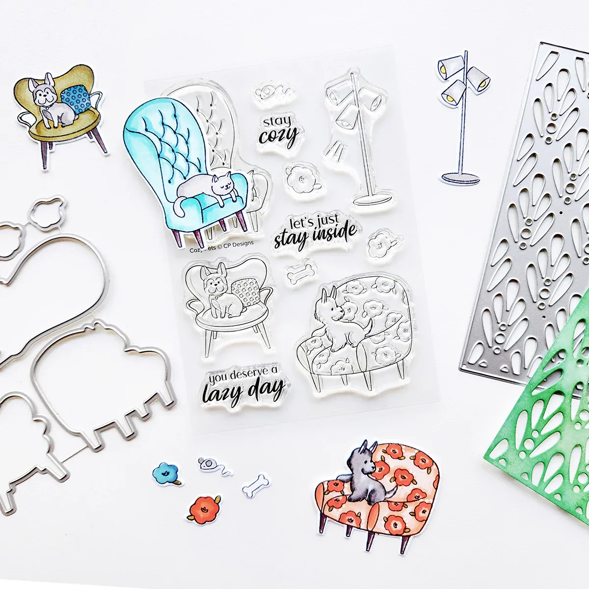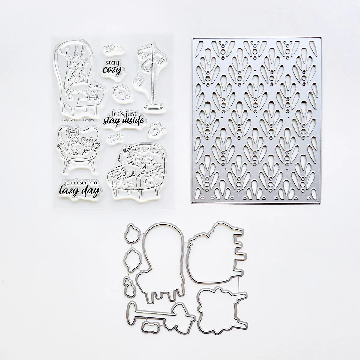 Settle in with the Cozy Corner Bundle, a collection designed to bring warmth and charm to your winter crafting. This bundle includes the Cozy Pets Stamp Set and Dies, the Gilded Oval Dies, and the Deco Flourishes Cover Plate Die—a perfect mix for creating inviting, layered projects.