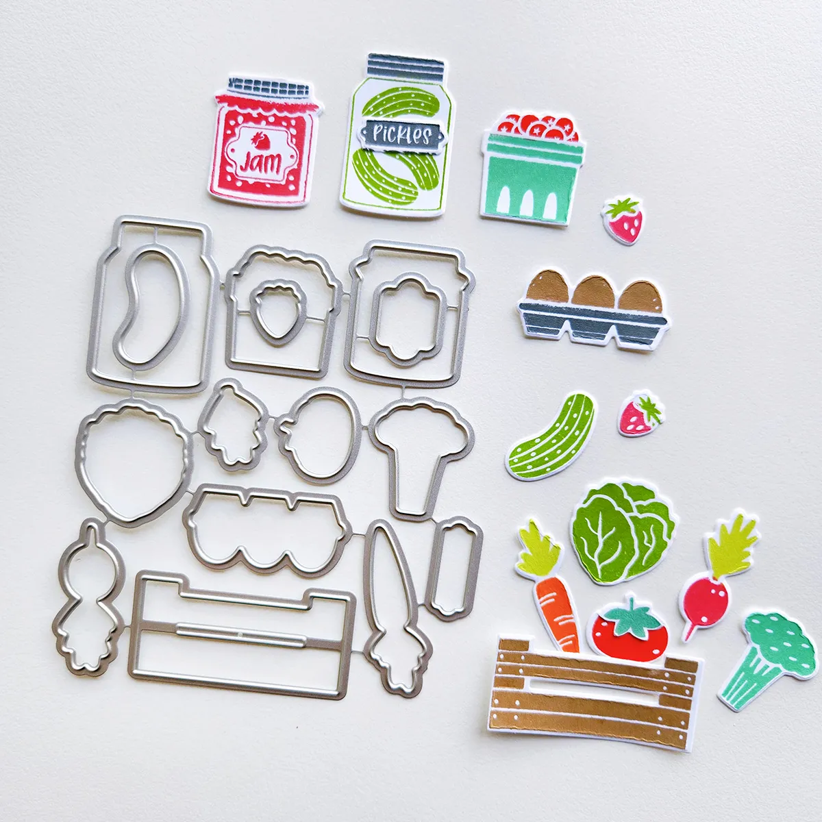 Whether clustering die cut fruits and veggies or highlighting a single farm stand favorite, these coordinating dies help bring all those farm fresh details to life. A perfect companion for creating projects that are truly the cream of the crop.