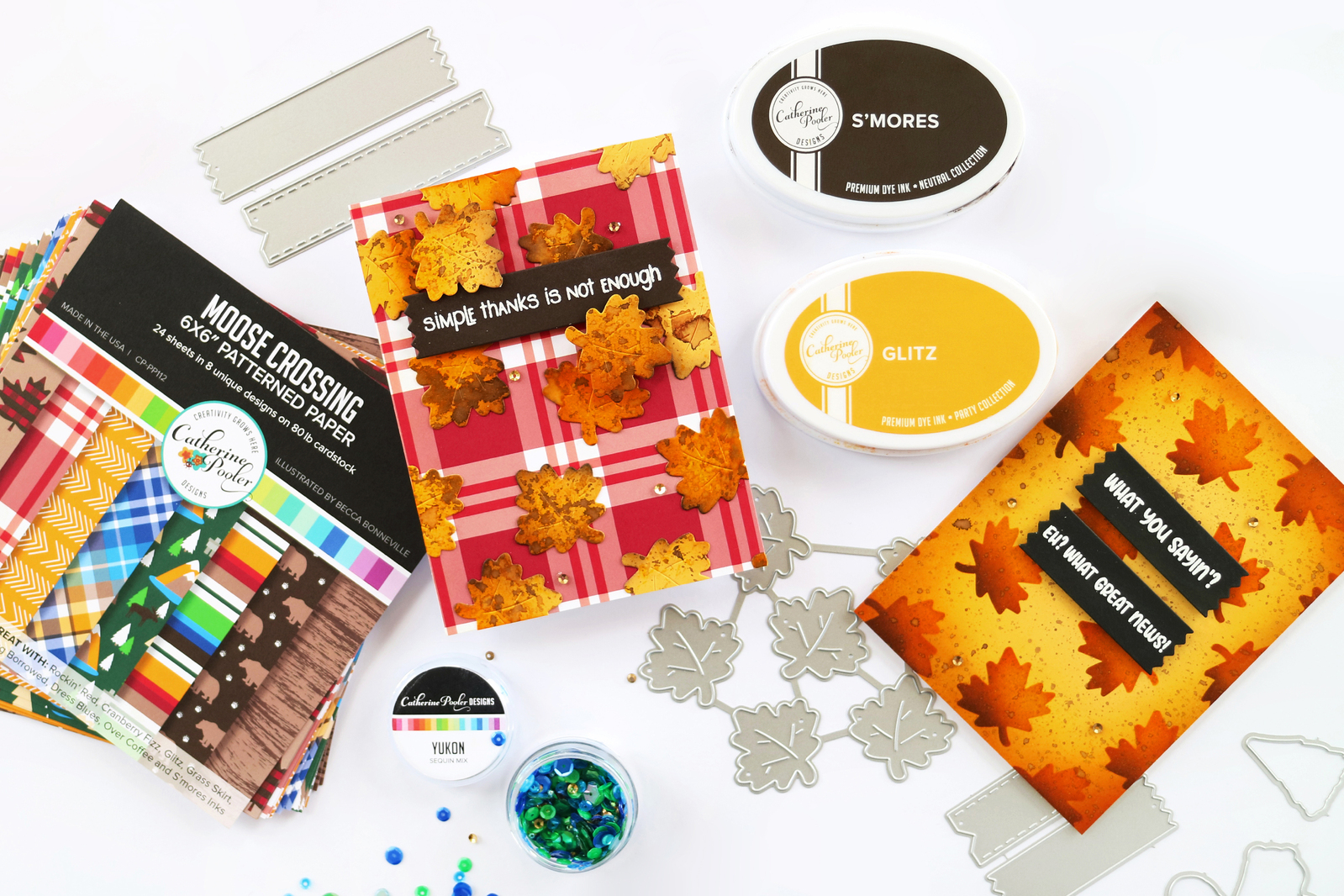 The Forever Maple Dies were created to be used with the Forever Maple Stencil. Ink blend your leaves onto cardstock, line up the dies with the center stenciled leaves and run through your die cutting machine for perfectly colored maple leaf dies. These leaves are perfect for adding a pop of Canadian pride or seasonal color to your next project.