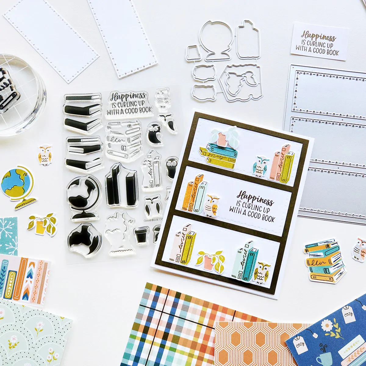This set features the Good Book Stamp Set and Dies, the On the Shelf Cover Plate Die, and the Right at Home Patterned Paper—all designed to help you craft warm, layered cards filled with charm and story. Layer stamps, dies, and patterned paper to create stacks of books, charming shelf scenes, and playful accents.