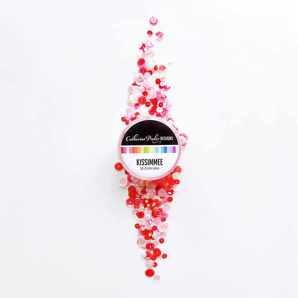 Kiss-a-meee! Named for the fun and playful Central Florida town, the Kissimmee Sequins mix is a jar full of love. This sparkling blend of reds, pinks, and pearly whites adds shimmer and shine to any Valentine project. Perfect for shaker cards, embellishments, or just a little extra sparkle, these sequins coordinate beautifully with our Heartbreaker Patterned Paper.