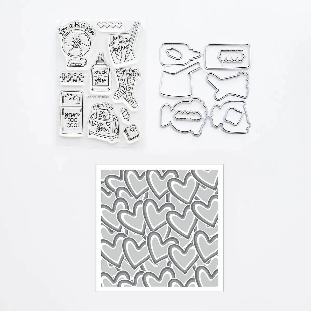 All the cuteness, all in one! The Love Puns Bundle has a fun and playful theme, pairing the silly Love Puns Stamp Set & Dies with the heart-filled Love Stack Layered Stencils—the perfect combination for creating sweet, layered Valentine cards. Just grab your CP white cardstock, blending brushes and your CP Inks, and you’re ready to spread laughs, love, and a little bit of nostalgia
