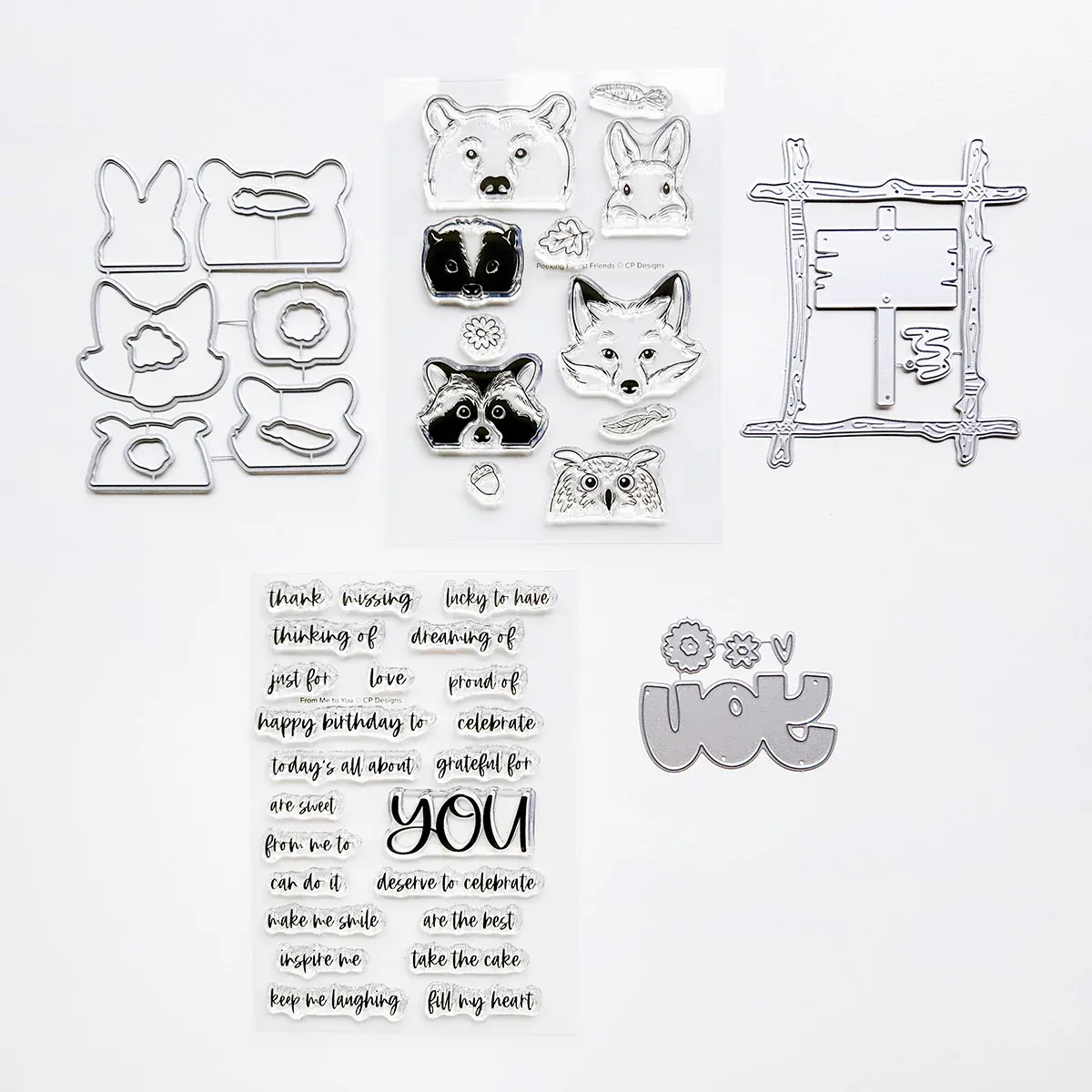 Create charming, personality-packed projects with the Peeking Forest Bundle. This bundle includes the Peeking Forest Friends Stamp Set, Peeking Forest Friends Dies, From Me to You Sentiments Stamp Set, Trail Marker Dies, and the Just You Word Die.