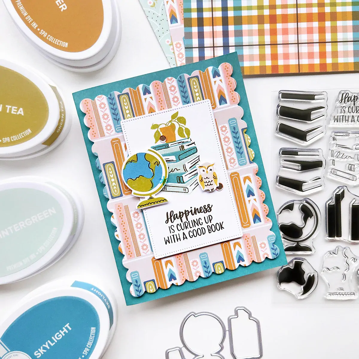 Inspired by winter colors and cozy wallpaper patterns, the Right at Home Patterned Paper features charming prints like shelves of books, tea cups, pretty plaids, and honeycomb textures. With a soothing Spa Color palette of Clay Mask, Amber, Green Tea, Wintergreen, Skylight, Glacier, and Cargo, this pack brings a calm to your projects. It’s the perfect collection to make your cards and crafts feel truly Right at Home.