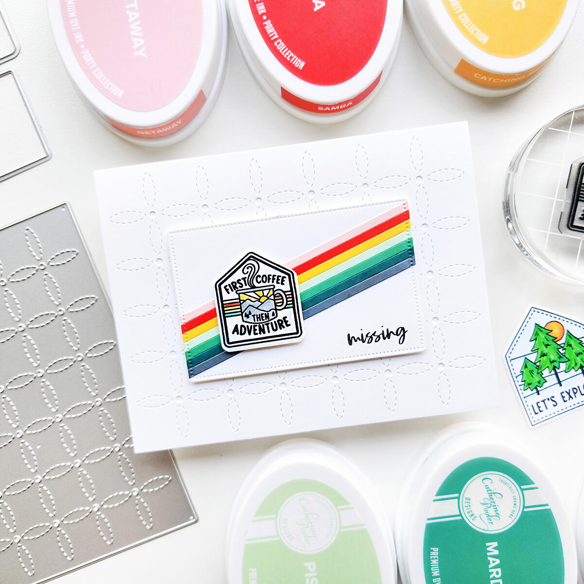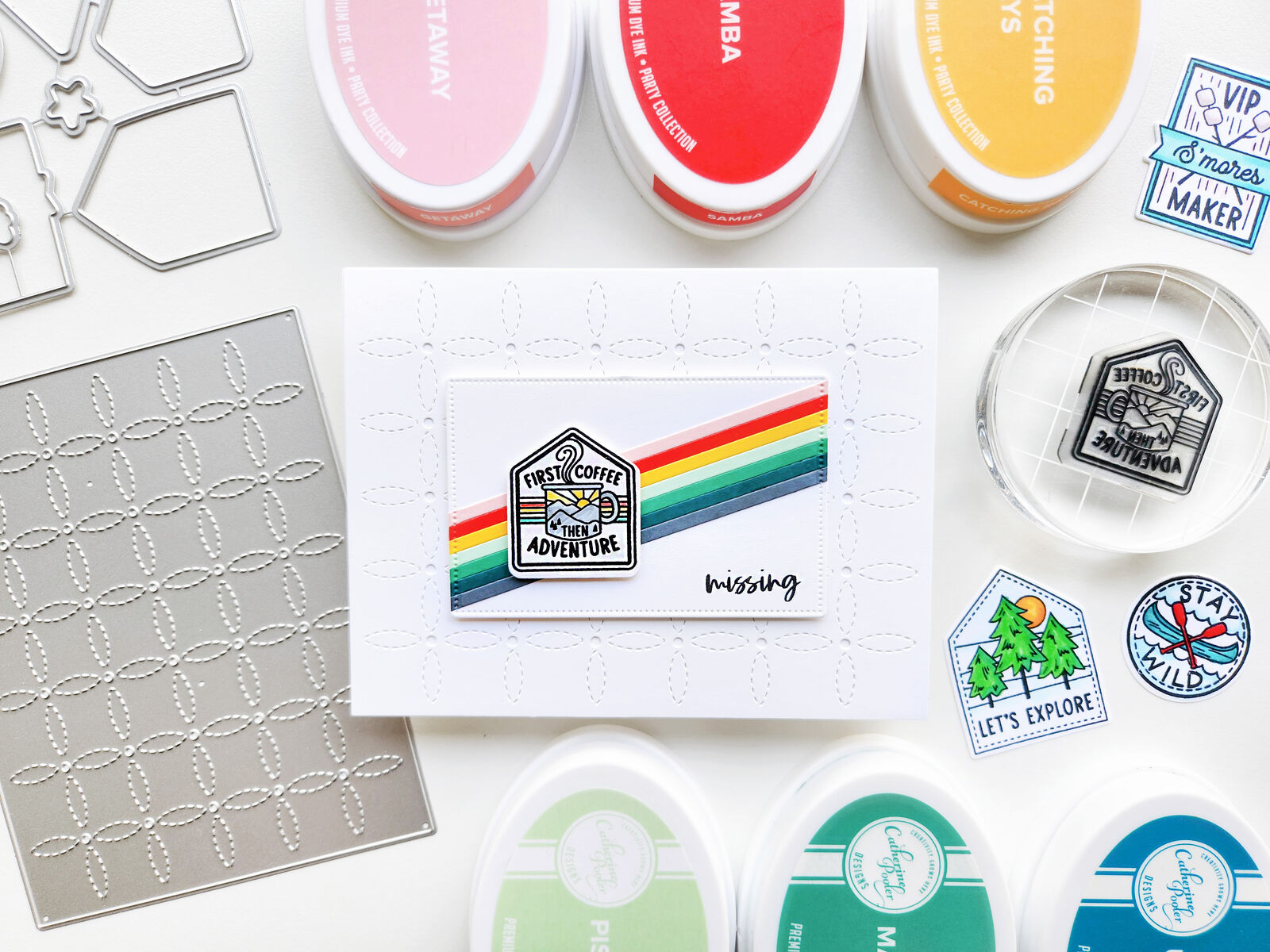 Inspired by tufted upholstery, the Tufted Cover Plate Die adds the look of stitching and buttons for a perfectly textured background. Cut it from CP Colored Cardstock or try ink blending for a beautiful ombre effect. This versatile die works on just about any card and pairs especially well with the retro campers in the Happy Trail-ers Stamp Set.
