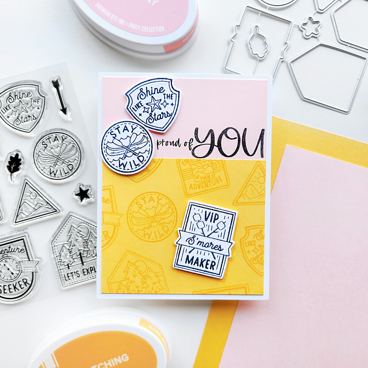 In StockSend a card or decorate your scrapbook spreads with the Wilderness Collector Stamps and their coordinating dies. These cute camp badges celebrate the adventurous spirit, whether someone is an adventure seeker or a VIP s’mores maker. Inspired by scout badges with a whimsical twist, they are perfect for coloring in and using as the star of your card, or stamping them all in one color to create an outdoorsy background. Earn them all...no actual camping required!