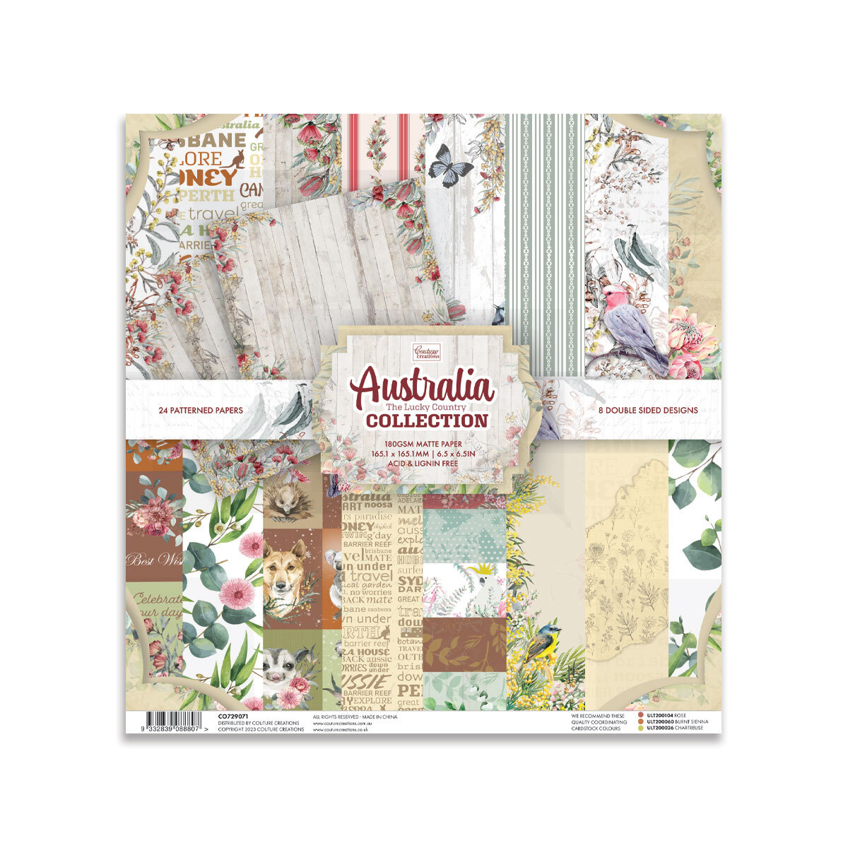 Presenting the latest collection from Couture Creations. Australia The Lucky Country is a celebration of some of the amazing fauna and flora our land has to offer. 6.5 x 6.5in Paper Pad