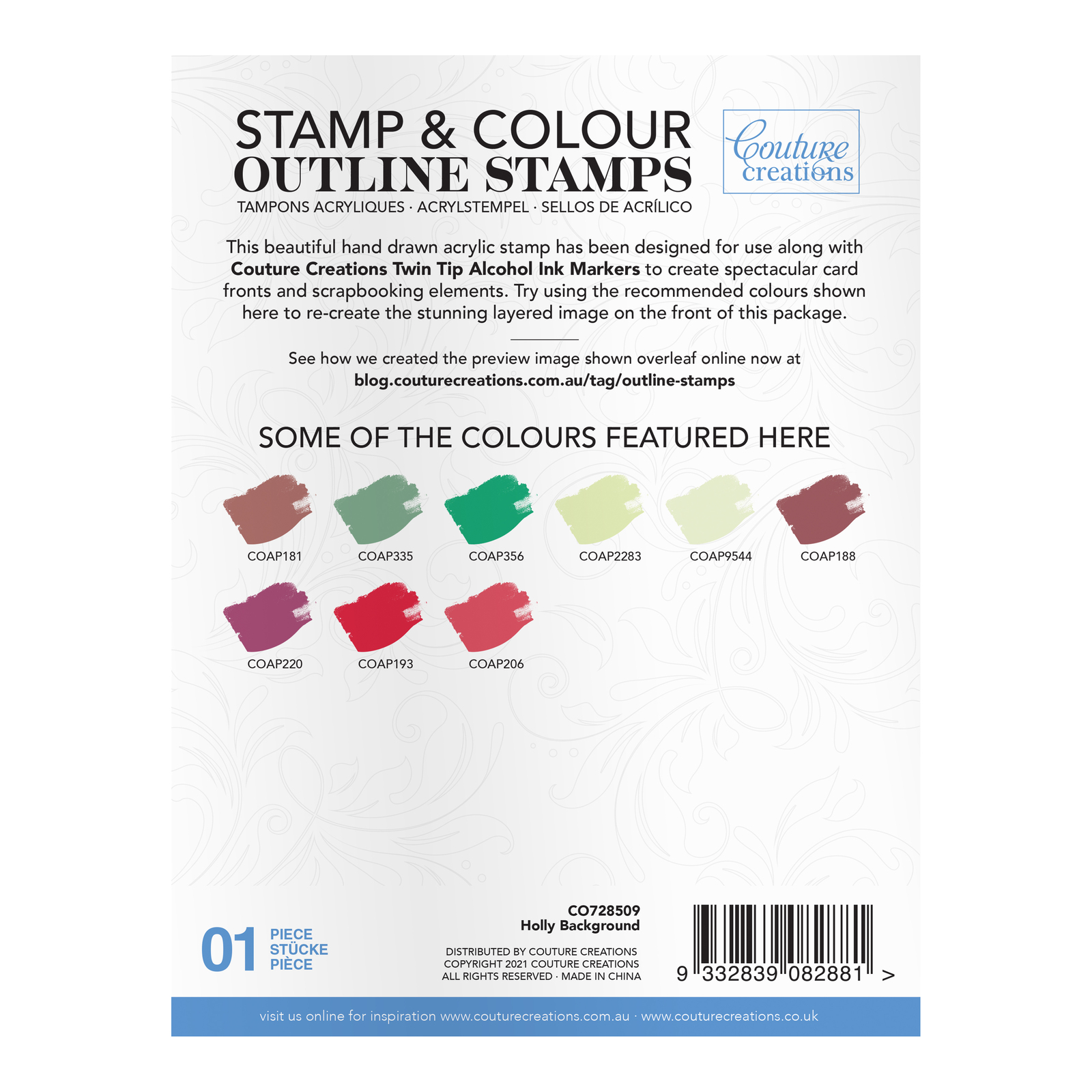 Couture Creations Holly Background Stamp & Colour Outline Stamp