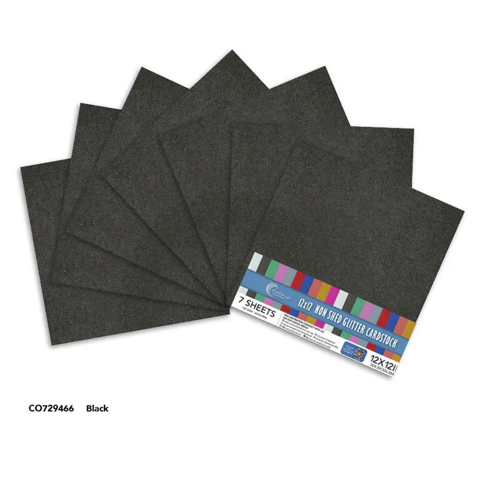 Couture Creations Laminated 12x12" Glitter Paper 7pk - Black