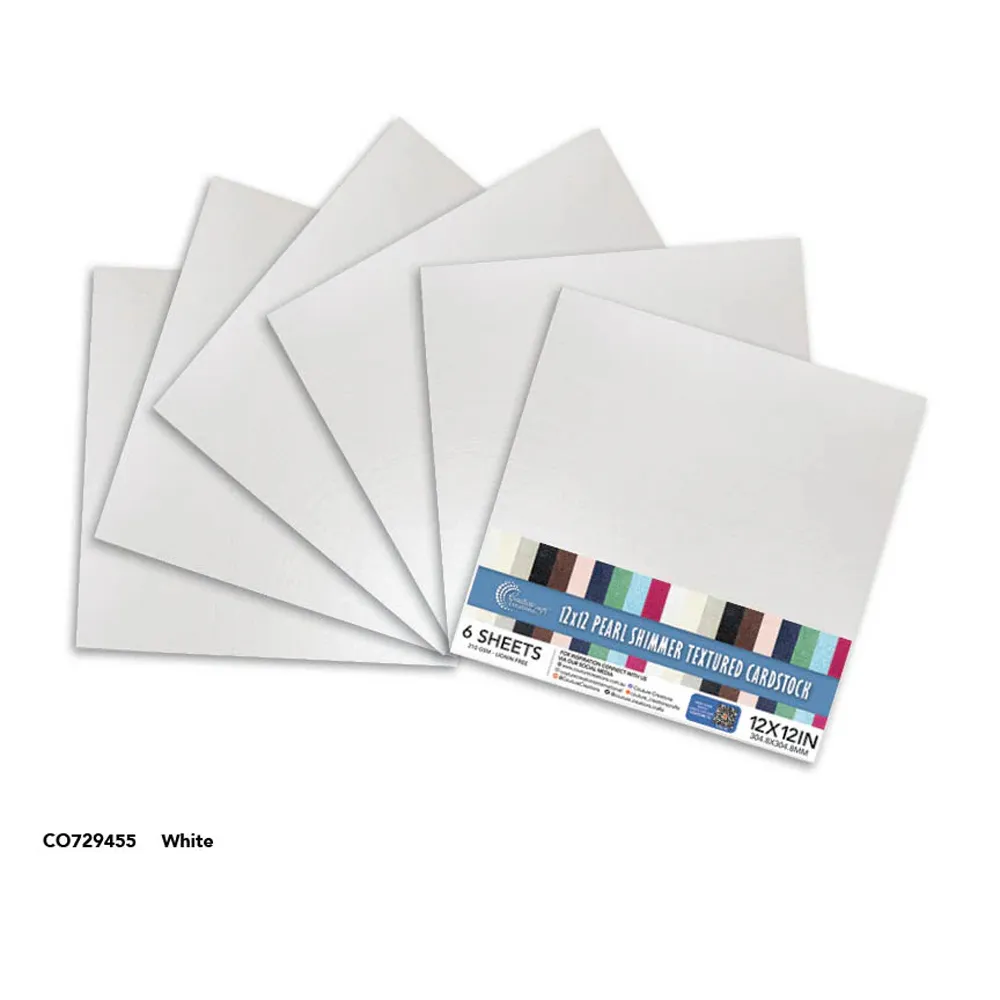 Couture Creations Pearl Shimmer 12x12" Textured Cardstock 6pk - White