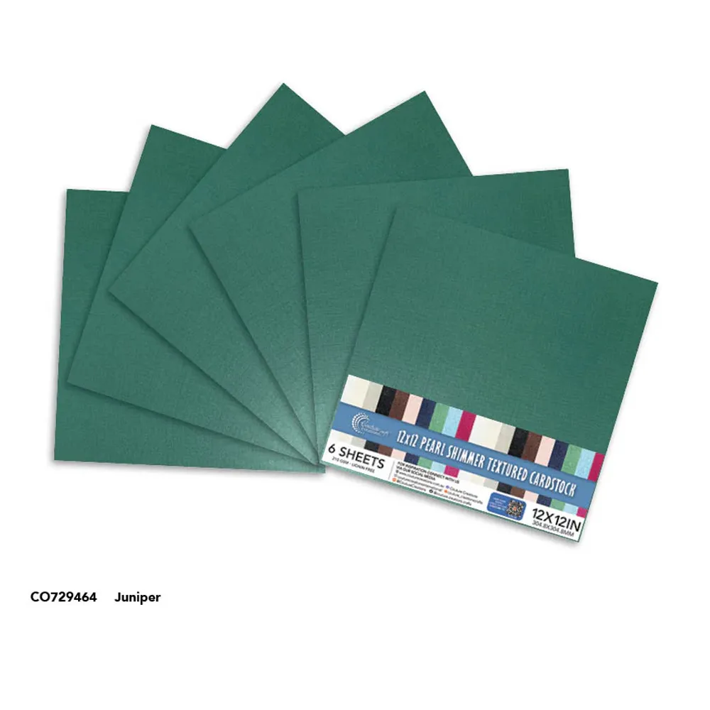 Couture Creations Pearl Shimmer 12x12" Textured Cardstock 6pk - Juniper Green