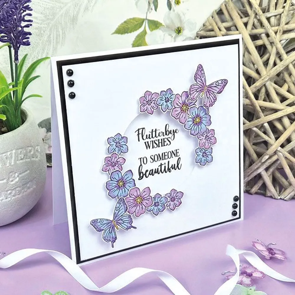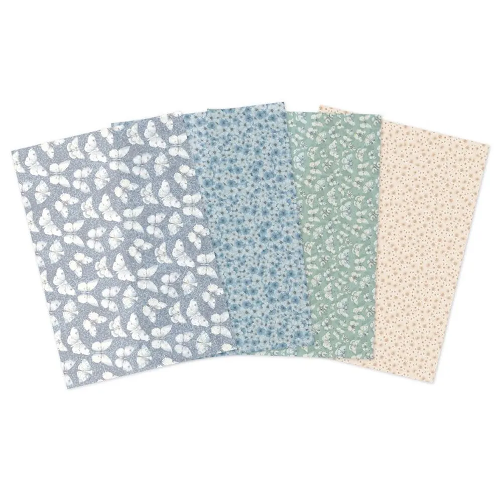 There are 4 sheets of printed parchment featuring small butterflies or flowers as well as an A6 set of For the Love of Stamps that echoes the images in the gifts, accompanied by two sentiment stamps. If you want inserts to match the gifts, then they are free to download on the Hunkydory website.