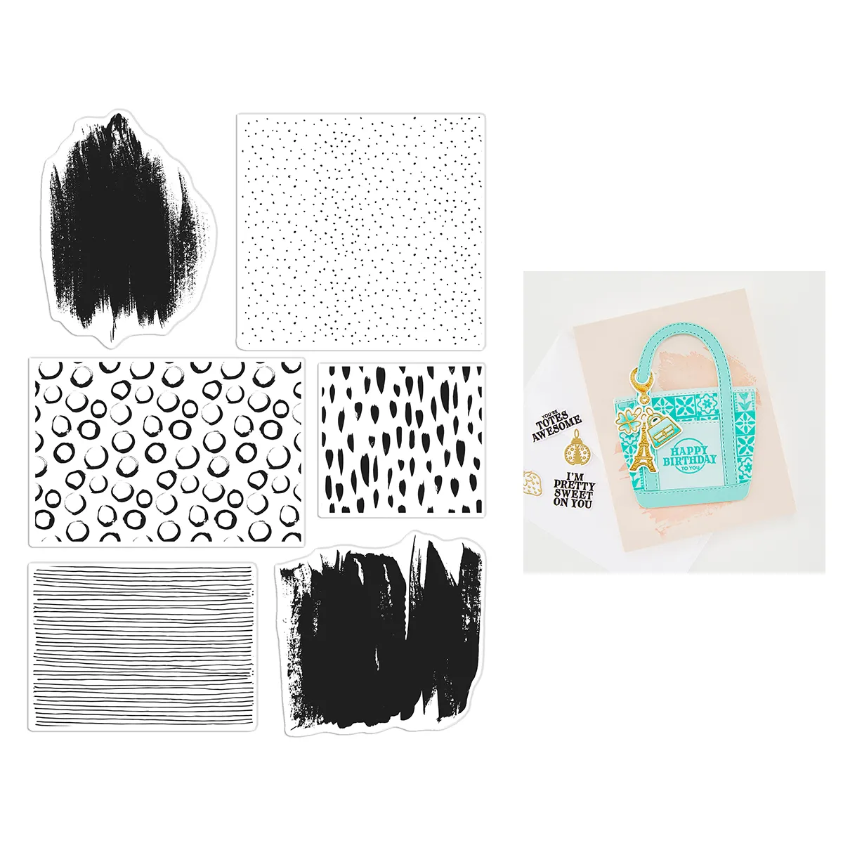 Build texture, depth, and personality into your projects with the Background Builder Clear Stamp Set. This versatile set features a mix of organic patterns, paint swatches, and graphic textures that work beautifully as grounding elements on cards.