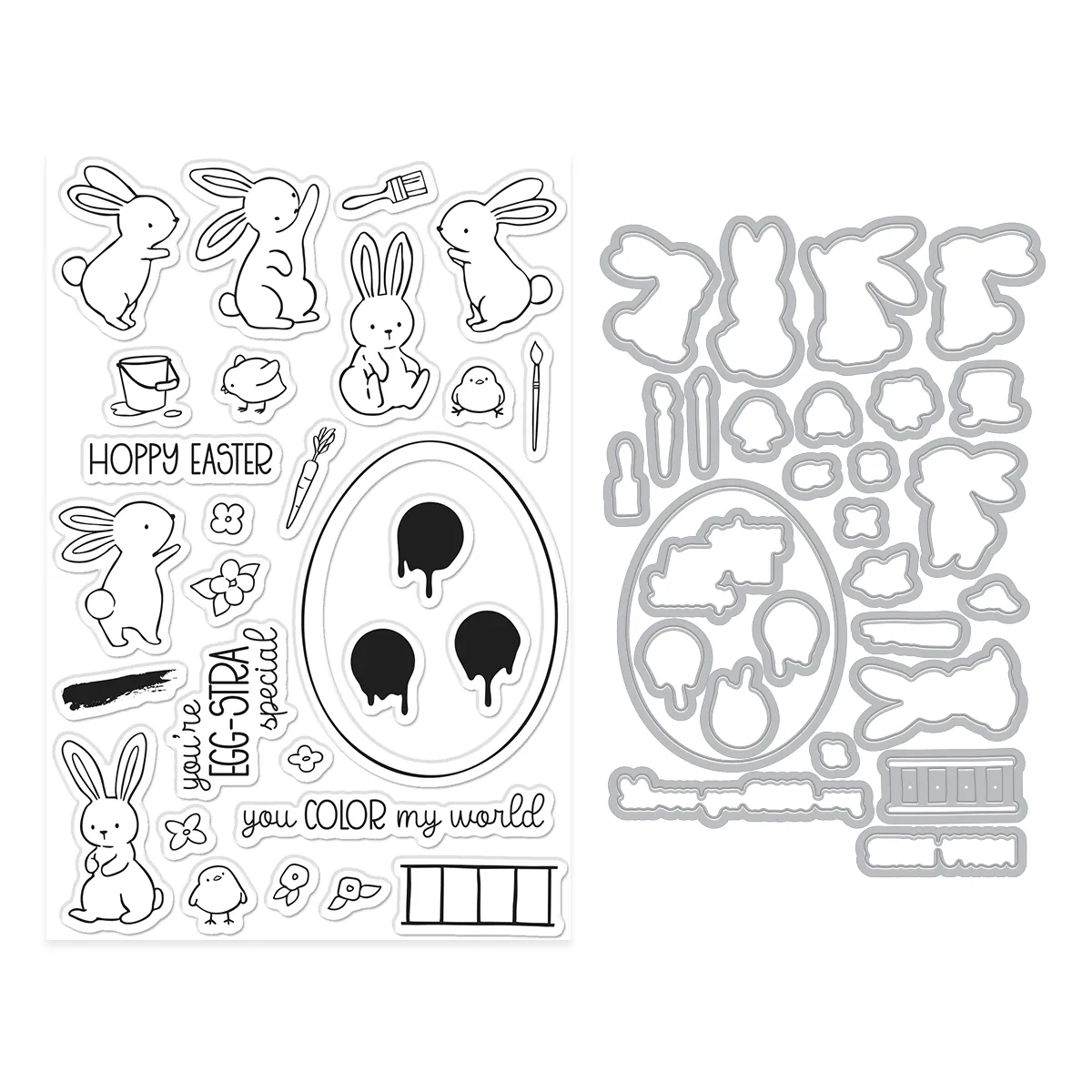Add a splash of playful charm to your projects with the Color My World Stamp & Cut Set. This cute and whimsical set features adorable bunnies, sweet springtime details, and fun art-themed elements that come together to create charming, story-filled scenes.