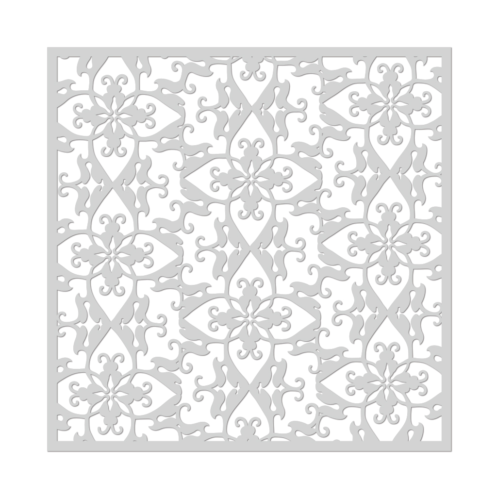 A lovely pattern reminiscent of the beautiful floral tile patios of Europe. Use with a bold colored ink or embossing paste to make a statement on your next project.
