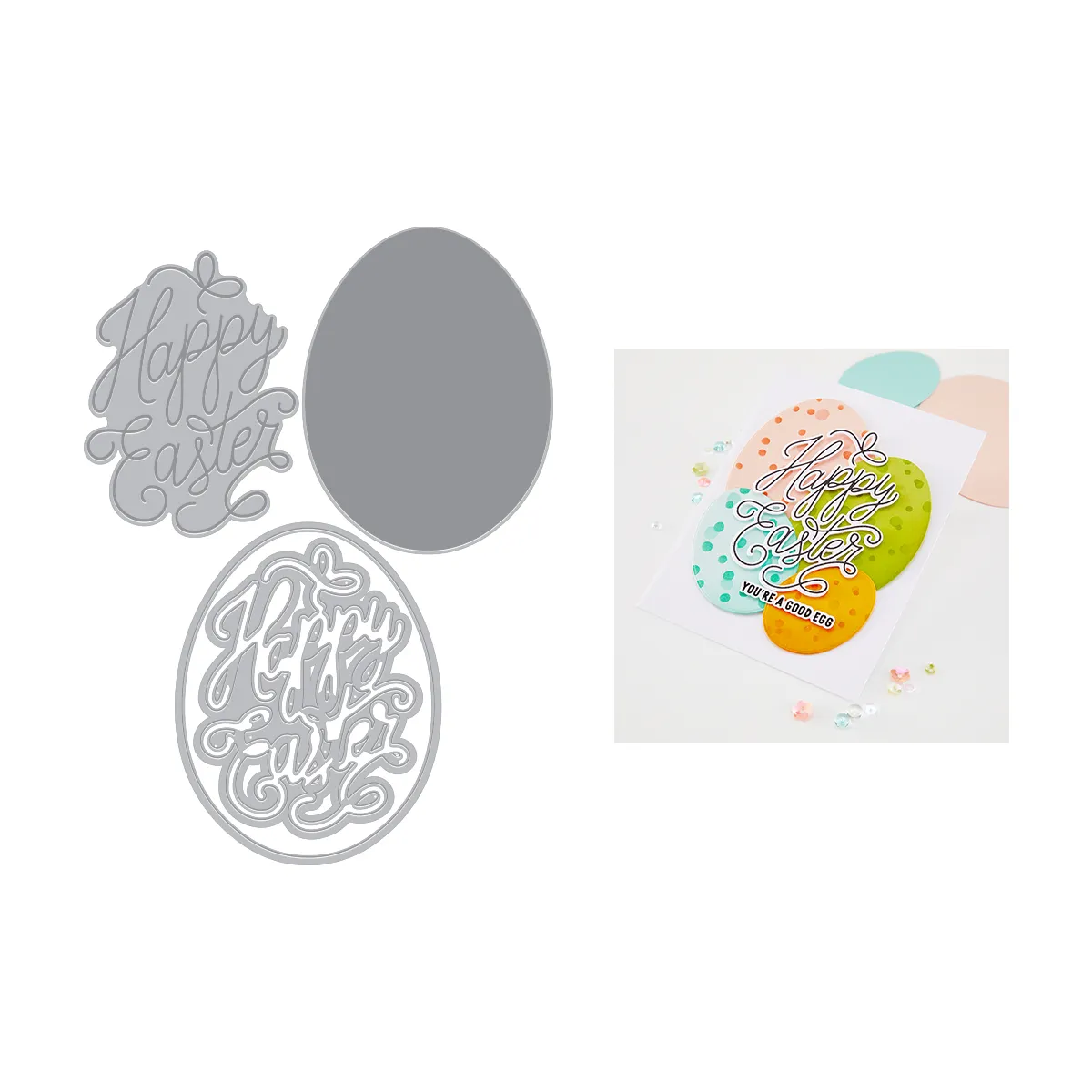 Add an elegant finishing touch to your Easter cards with the Happy Easter Letterpress + Foil & Cut Set . Designed for the BetterPress and Glimmer Systems, this set includes two press plates and two coordinating cutting dies that create a beautifully detailed egg-shaped greeting with graceful script lettering.