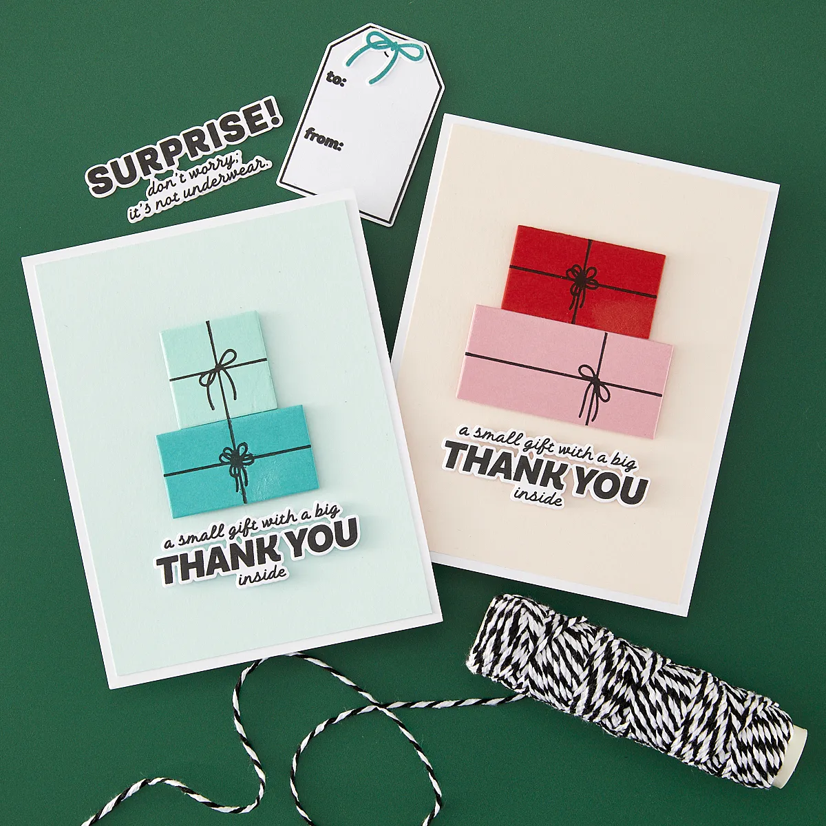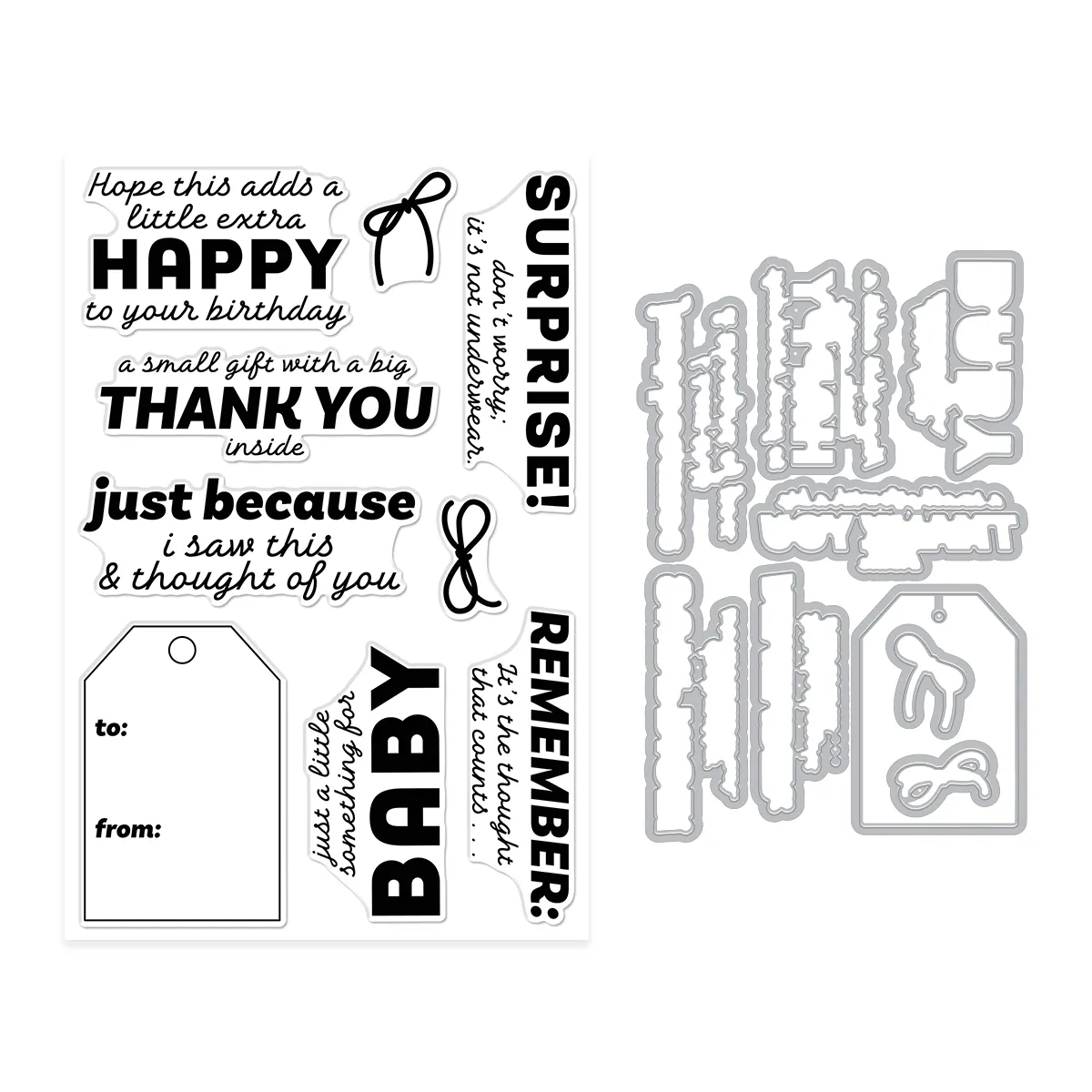 The Just Because Stamp & Cut set combines the heartfelt sentiments and charming elements of the Just Because Clear Stamp Set with perfectly coordinating dies for easy cutting and layering. This versatile collection includes all the playful phrases and gift tag designs, paired with precision-cut dies that make crafting faster and more polished.