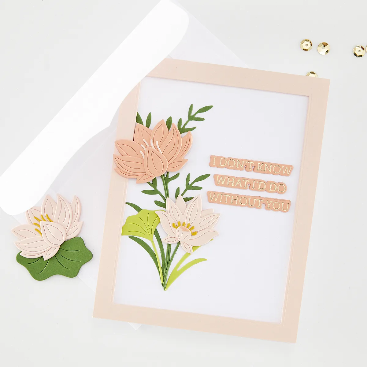 In StockCreate timeless floral designs with the Lotus Flower Die Set. This elegant set features classic lotus blooms, buds, leaves, and stems that layer together effortlessly for graceful, dimensional results.