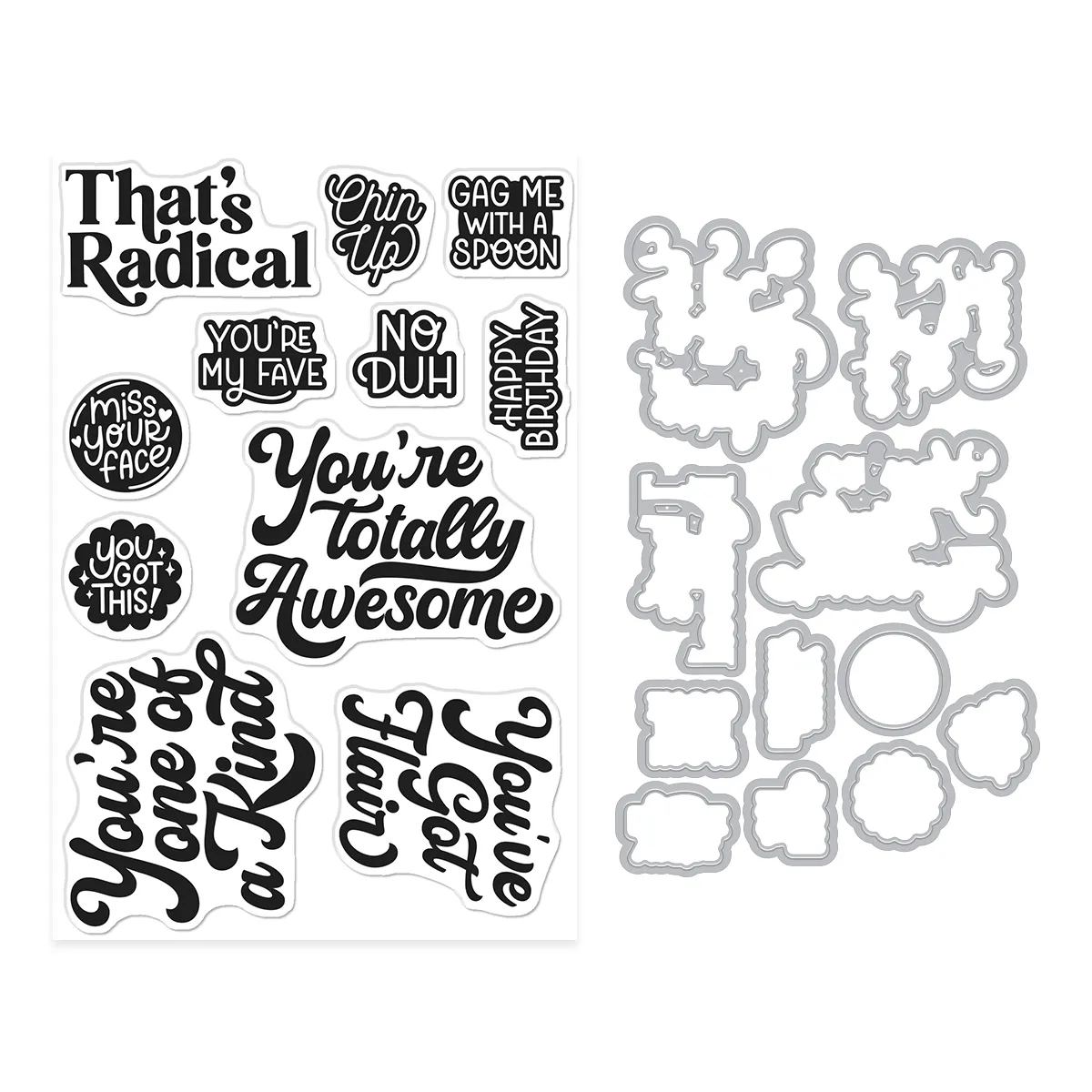 Bring bold sentiments and clean die-cut details together with the Totally Awesome Stamp & Cut set. This set pairs expressive, high-energy phrases with perfectly matching dies for easy layering and polished results.