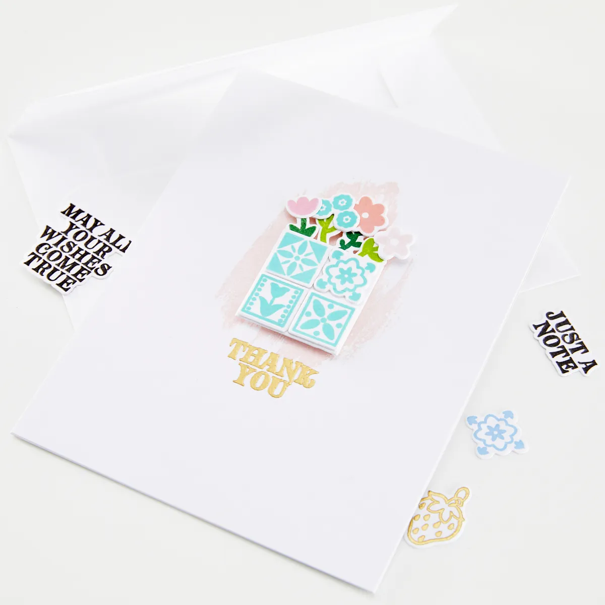 The matching dies add a polished, finished look and make it simple to pop up sentiments, tuck them into tote designs, or layer them over patterned backgrounds. Perfect for cheerful cards full of personality!