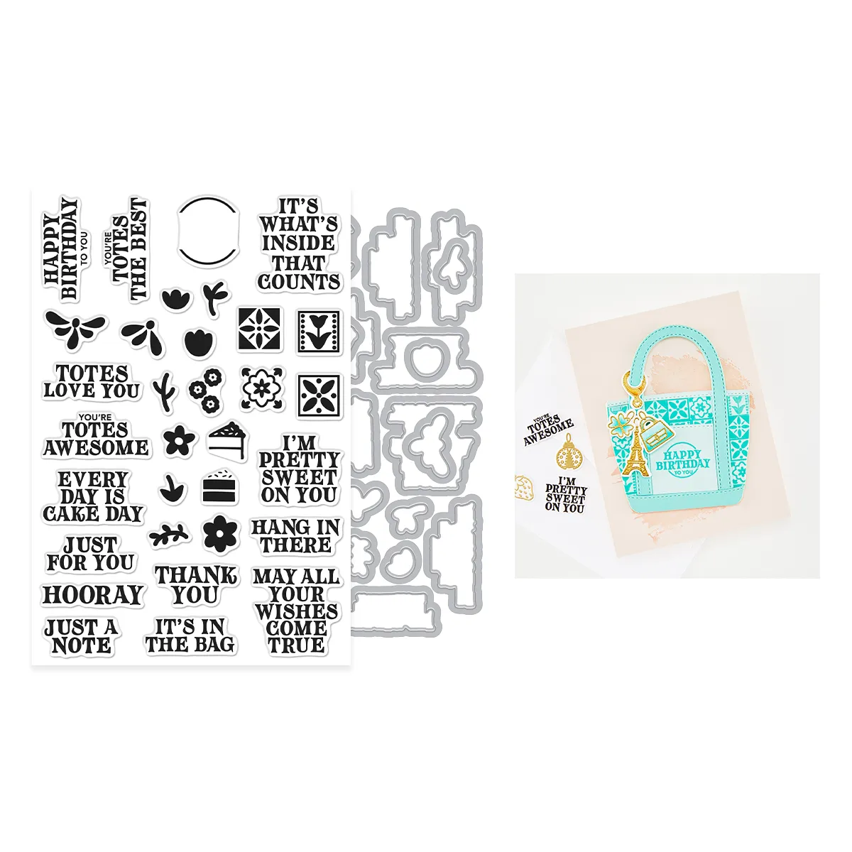 Create bold, joyful messages with the Totes the Best Stamp & Cut. This versatile set combines playful sentiments, decorative icons, and coordinating metal dies for easy layering and dimension.