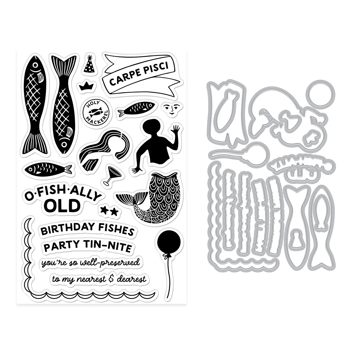The Well Preserved Stamp & Cut is a fun and pun-filled clear stamp and die set that celebrates birthday milestones with quirky sea-themed characters and bold, hand-drawn accents. From off-the-hook greetings to tongue-in-cheek sentiments, this set adds a splash of humor to birthday cards for every age. Includes 21 clear stamps and 17 coordinating metal dies.