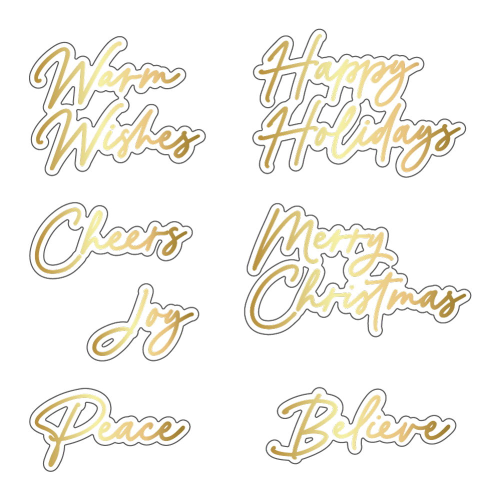 Hot Foil Sentiments Range: 1"-2 3/5" x 1" - 1 3/5"