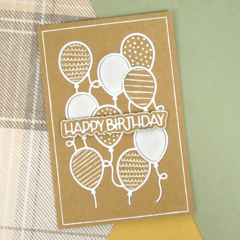 Whatever you are celebrating, create a background filled with balloons with the Moonstone Dies - Brilliant Balloons die set. The fun arrangement of outline balloons will fit beautifully within a 6” x 4” card or can be cut multiple times and arranged to create larger backgrounds. Cut from bright, coloured cardstock and paper piece the balloons back into the outline die to create a card bursting with colour, or cut from gold or silver Mirri to create a traditional look. Alternatively, add parchment behind the outline of balloons to create an opaque balloon effect. Create striking shaker cards and pair with centrepiece sentiments for any style of card and why not snip into the die cut to create individual balloon embellishments.