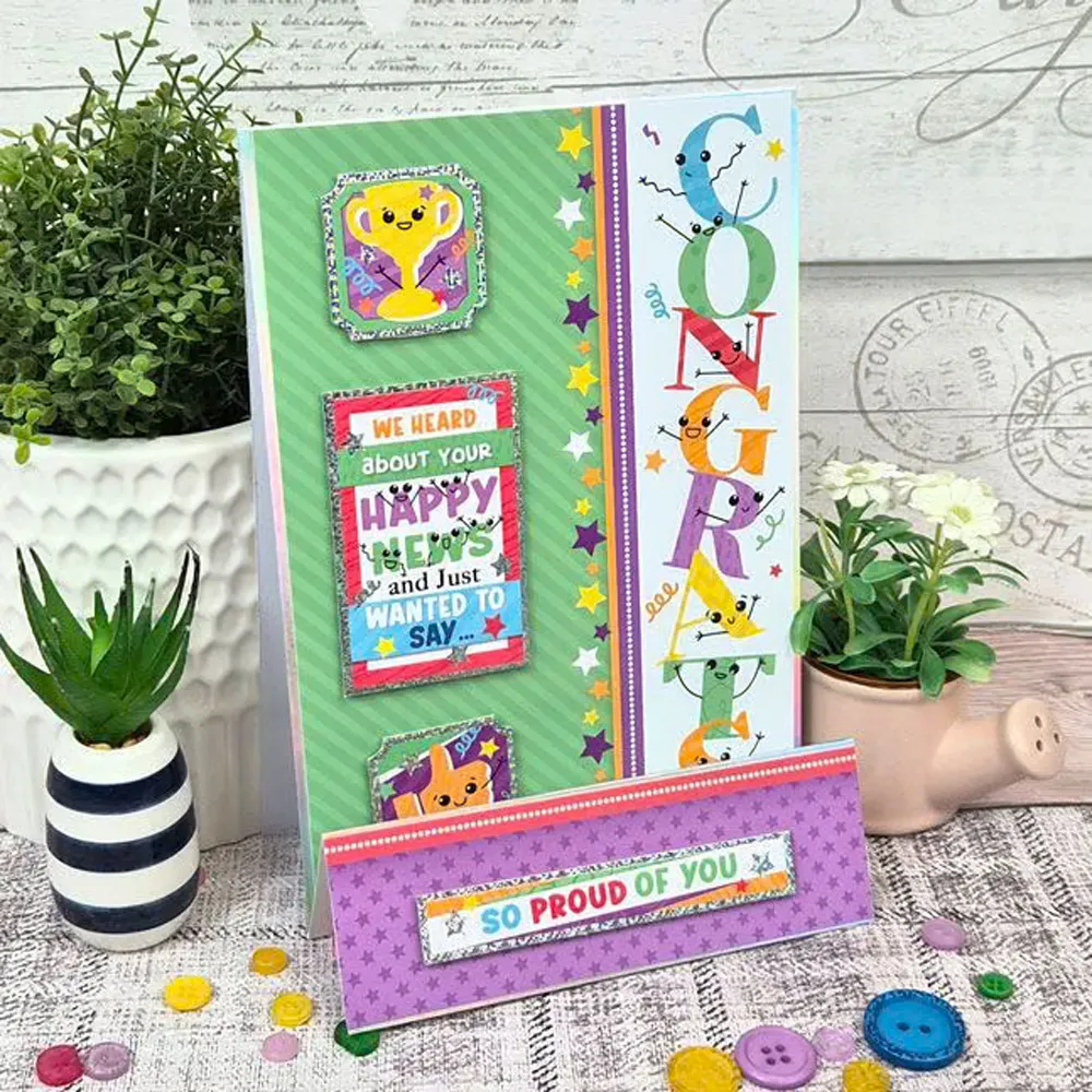 Foiled and printed cardstock matches the toppers seamlessly giving you loads of exciting card making opportunities, from borders, side panels and corners, there’s plenty of variety.