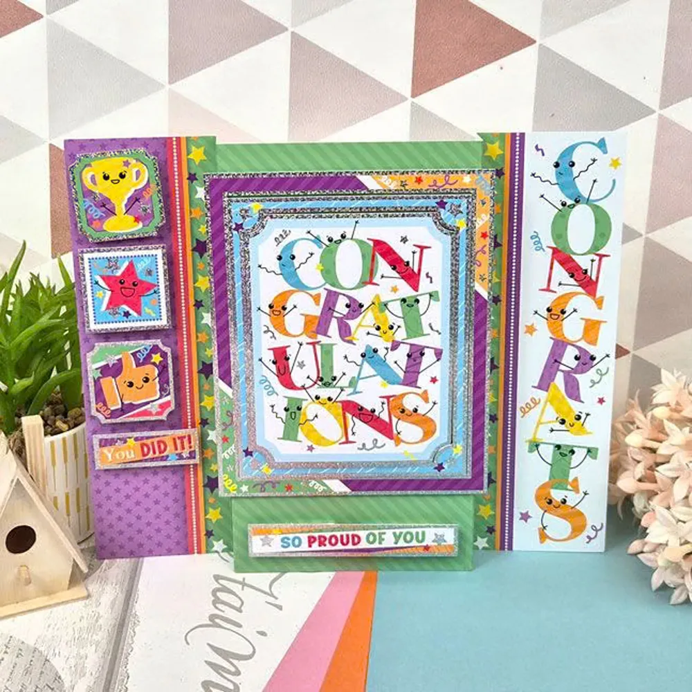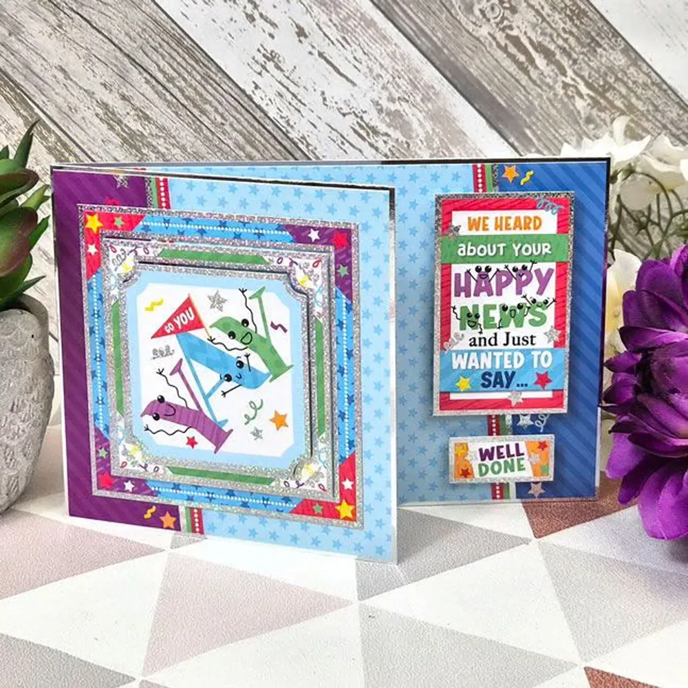 Foiled and printed cardstock matches the toppers seamlessly giving you loads of exciting card making opportunities, from borders, side panels and corners, there’s plenty of variety.