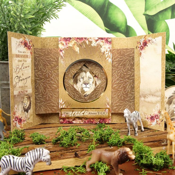 Only 2 Left!Go on an animal adventure with our Savannah Surprise Concept Card Kit. Get up close and personal with the animals of the savannah and delight your recipients with a fabulous surprise shutter card. Each card focuses on a different animal; a lion, a giraffe, an elephant and a zebra, which are all beautifully accent foiled and embellished with florals, with backgrounds featuring watercolour textures and patterns that use an earthy and natural colour palette.