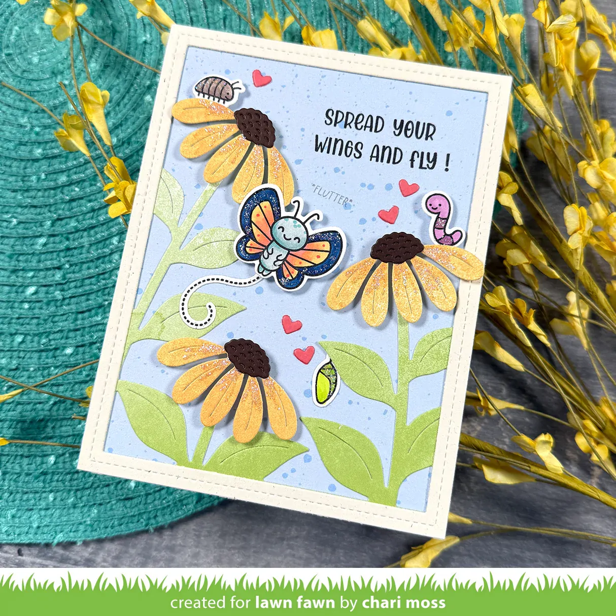Join us in a larger-than-life garden adventure! This large-scale flower is perfect for the tiny insect friends from I Like Big Butterflies or A Bug Deal. This stunning backdrop is also available in Big Blossom Backdrop: Landscape. Coordinating set ideas: Create with your favorite colors of cardstockÿ(shinyÿis super fun) orÿpatterned paper for a custom look every time. approximate sizes:backdrop: 4 1/4" x 5 1/2" This set has 5 pieces. Lawn Cuts custom craft dies are high-quality steel and are compatible with most die cutting machines!