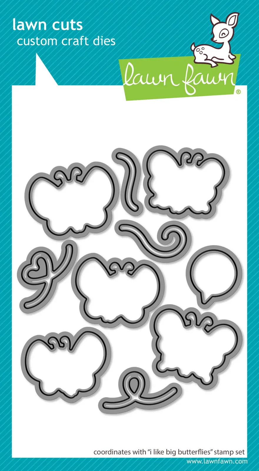 Coordinating stamp set: I Like Big Butterflies This set has 10 pieces. Lawn Cuts custom craft dies are high-quality steel and are compatible with most die cutting machines!