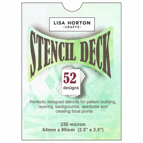 Lisa Horton Crafts The Stencil Deck - Volume 1 - 52 Individual Stencils. Unlock endless creative possibilities with the Lisa Horton Crafts The Stencil Deck ? Volume 1, a curated collection of 52 individual mini stencils designed for cardmaking, mixed media, scrapbooking and papercraft projects. This versatile deck features a variety of background patterns, motifs and layering elements that work beautifully with inks, paints, texture pastes, and more to help you build depth, detail and dimension in your artwork. Ideal for crafters of all skill levels, the compact stencil deck offers a go-to resource for creating custom designs, striking backgrounds, and unique visual effects ? whether you?re a beginner exploring new techniques or an experienced maker seeking fresh inspiration.