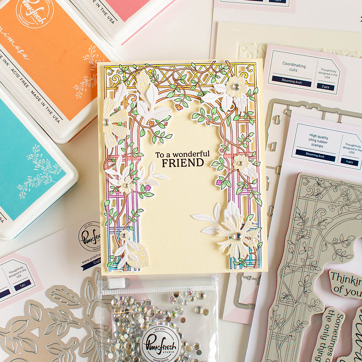 Only 1 Left!4 piece Pop Out® cling stamp designed by Inna Moreva. Made to coordinate with the Blooming Arch layering stencil set and Blooming Arch die set. There is also a matching Blooming Arch press plate. Available for purchase separately.