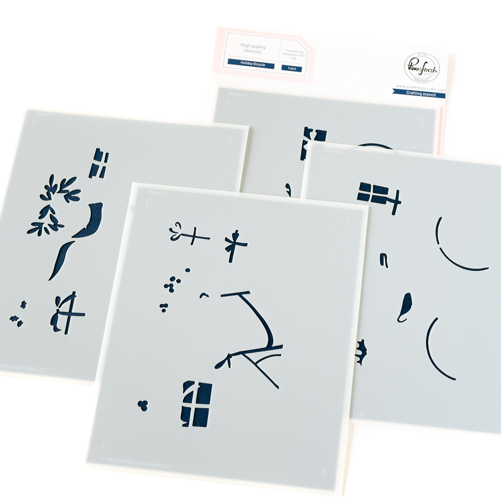 4 piece layering stencil set made to coordinate with the Holiday Bicycle stamp set and Holiday Bicycle die set.