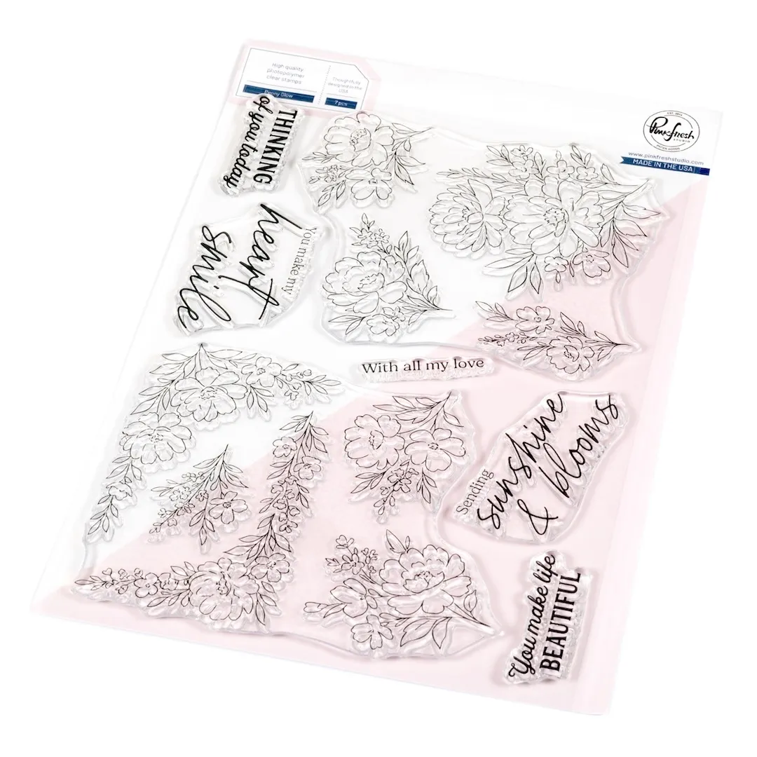 Bring elegance to your projects with the Peony Glow stamp set, designed by Kinnari Zaveri. It features gorgeous peonies in graceful sprays, accented with buds and leafy branches.