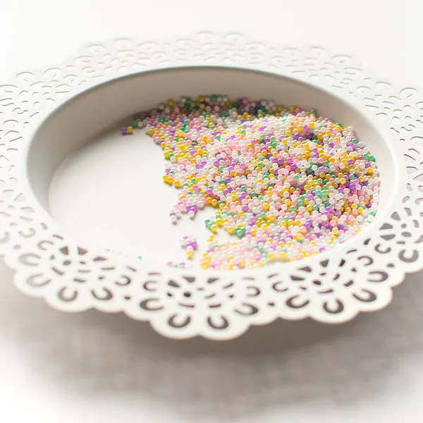 Each pack contains 2 teaspoons of 2mm beads. Not suitable for young children. These are not edible.
