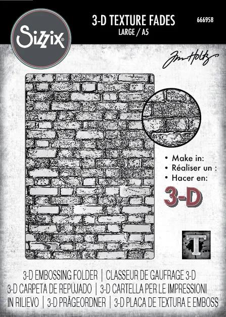 Sizzix 3-D Texture Fades Embossing Folder Brickwork Large/A5 by Tim Holtz