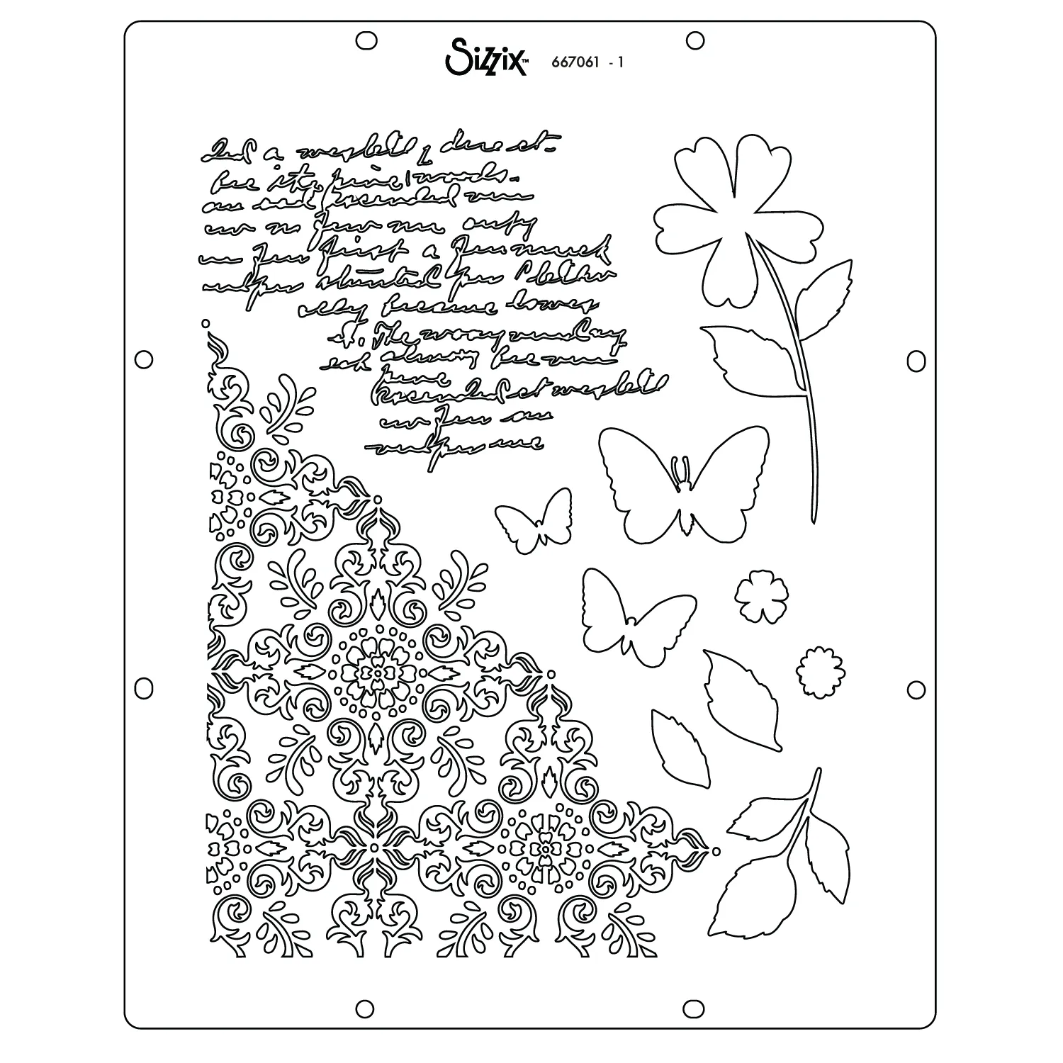 Only 2 Left!The Petal Play A4 Stencil by 49 & Market is a versatile stencil designed for use with the Sizzix Stencil & Stamp Tool (664896). Perfect for adding whimsical floral elements and soft, organic textures, this stencil works beautifully on cardstock, mixed media paper, and other crafting surfaces. Ideal for papercraft projects like scrapbooking, cardmaking, journaling, mixed media, and home dcor, Petal Play lets you blend inks, apply texture pastes, or mist sprays to create intricate, layered designs with ease. Add depth, dimension, and botanical charm to your crafts, transforming every project into a beautifully detailed work of art. Pairs perfectly with the Sweet Sprigs Clear Stamps and Framelits Die Set (667063), allowing you to combine stenciling and stamping for endless papercraft and crafting possibilities.